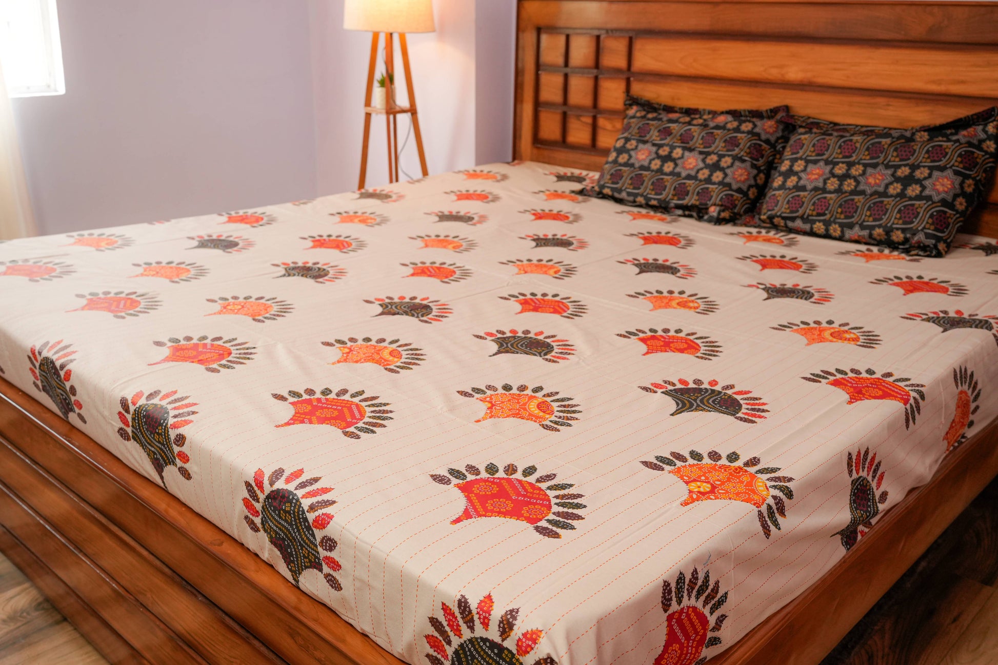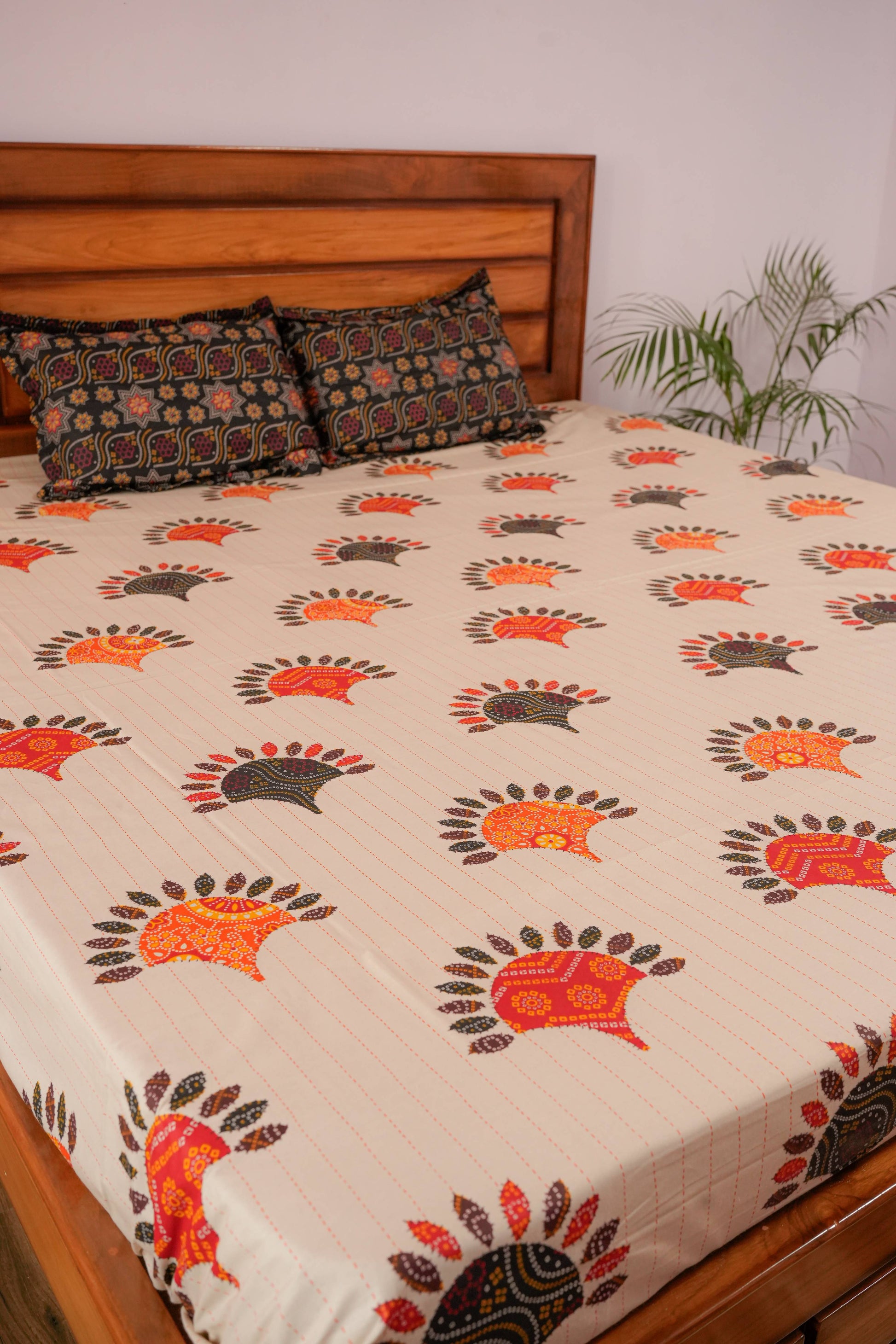 Add a burst of traditional charm to your bedroom with this Chunri Patch Cotton Bedsheet. Made from soft, breathable cotton, inspired by classic Indian textile artistry. Each patch showcases rich colors and intricate patterns, creating a lively and unique look that instantly brightens any room.