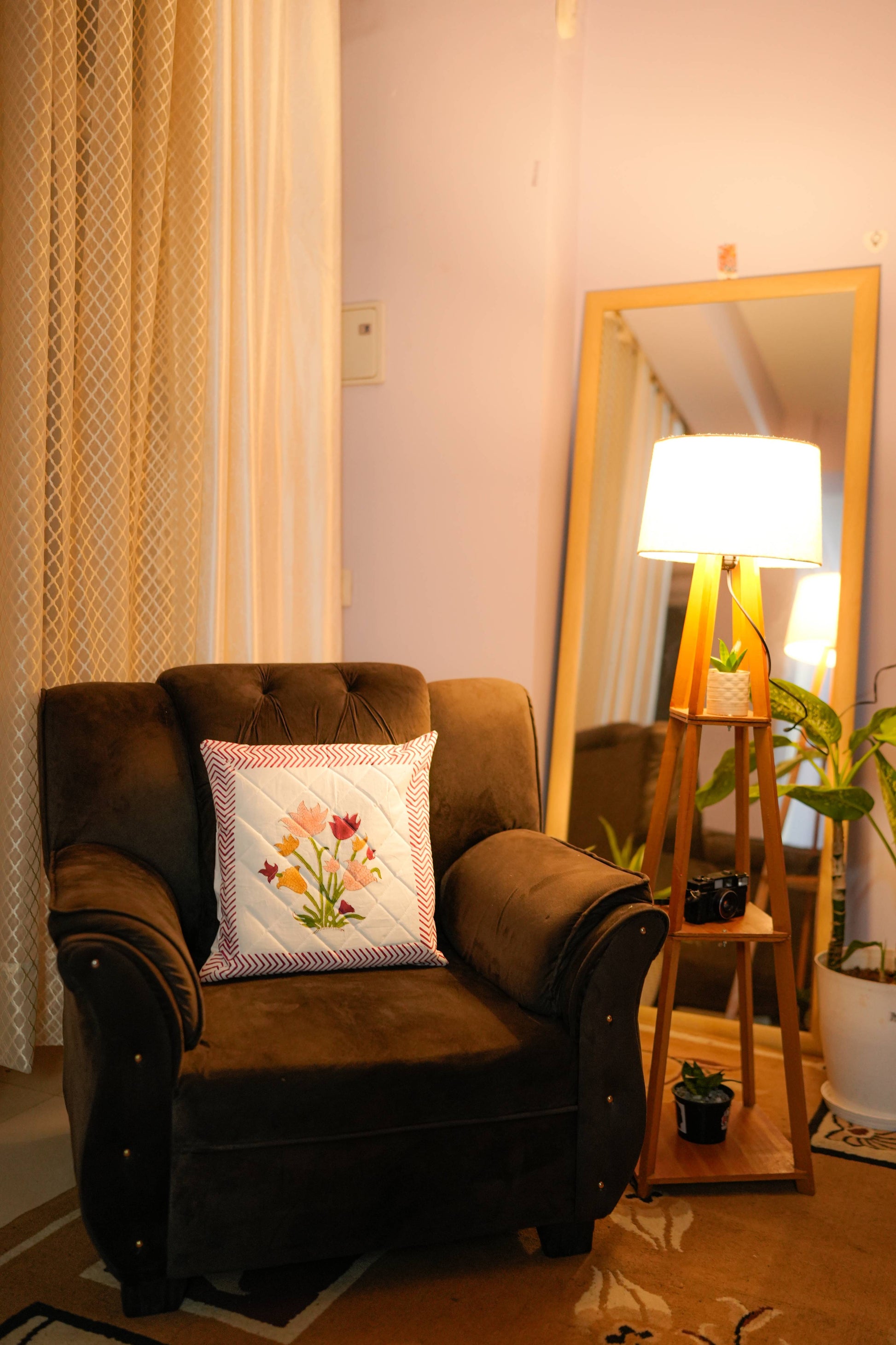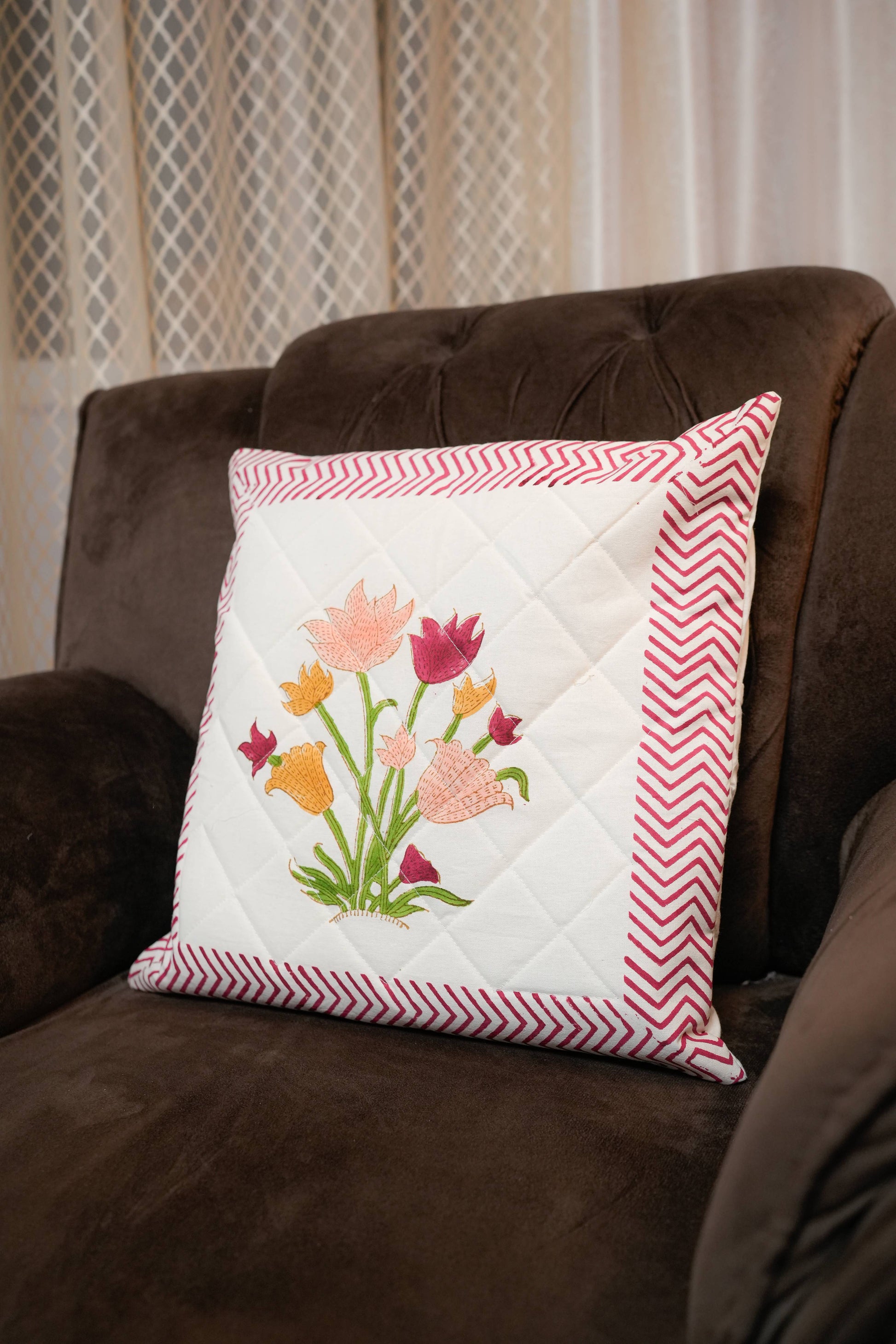 Add a touch of handcrafted elegance to your home with this Floral Motif Hand Block Quilted Cushion Cover. Featuring intricate floral patterns created through traditional hand block printing, it highlights authentic craftsmanship. Made from soft and breathable cotton.