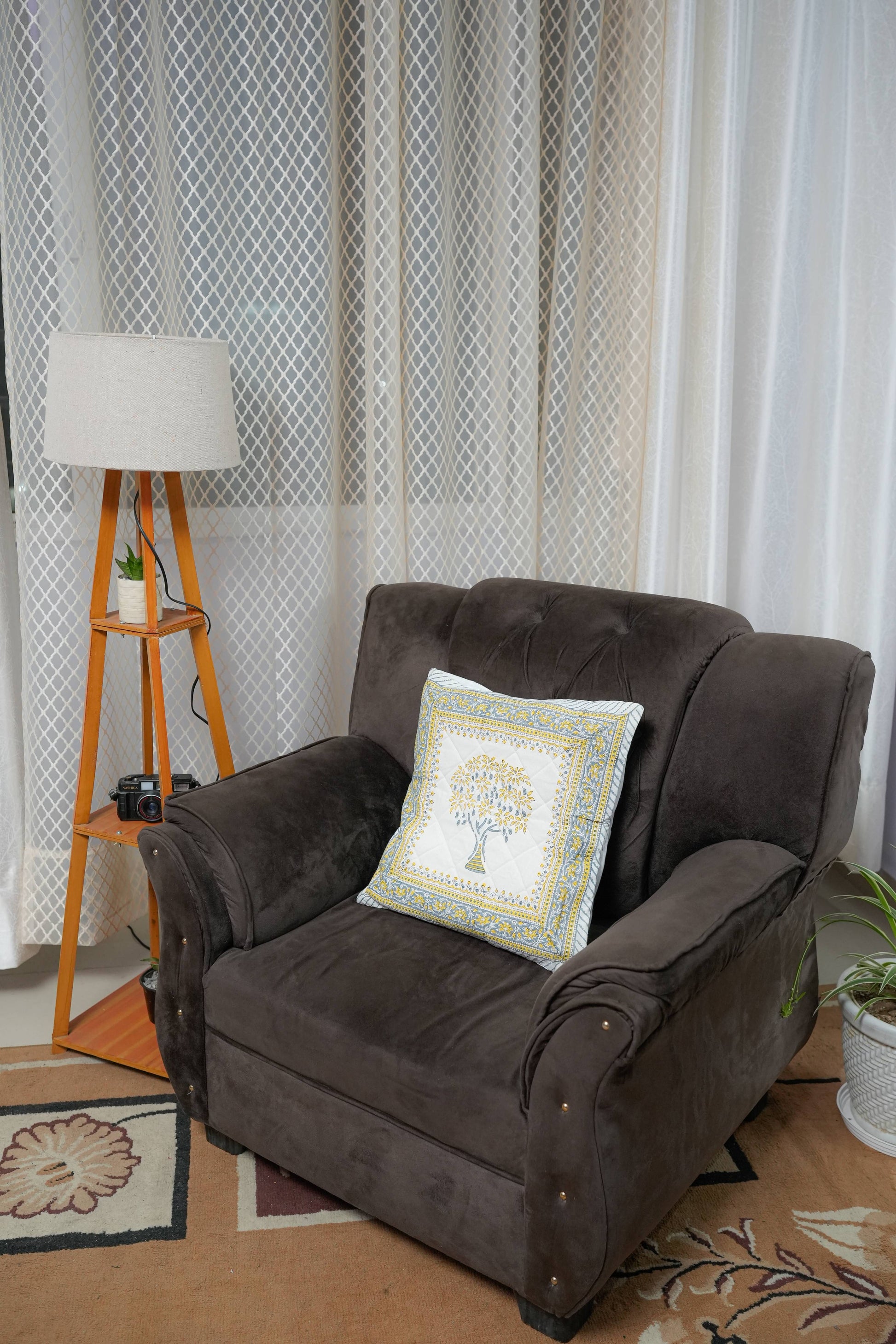 Bring the beauty of nature indoors with this tree motif hand block quilted cotton cushion cover. Crafted from soft, breathable cotton, it features intricate hand-printed tree designs created by skilled artisans using traditional wooden blocks. The quilted texture adds depth and a cozy feel, making it ideal for sofas, chairs, or beds.